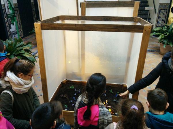 Emotivo momento cuando cinco pequeños paisajes, creados en el IES Salvador Távora para la Edición 2017 de Luces de Barrio, llegaron a la Casa Murillo para ser admirados por los visitantes de la exposición: un rincón de aromáticas, un trocito de huerto, un kumquat, una higuera y un olivo. Todos en