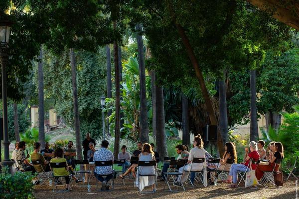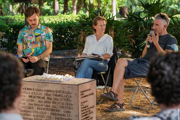 El sábado 9 de octubre en los jardines de la exposición tuvo lugar el encuentro Paisajes circulares. Un diálogo promovido por el ICAS y la UNIA y en el que participaron Mónica Gutiérrez (Basurama), Estelle Jullian, Lilian Weikert (La Plasita), Fran Díaz (Autofabricantes), Alice Attout (Recetas ur
