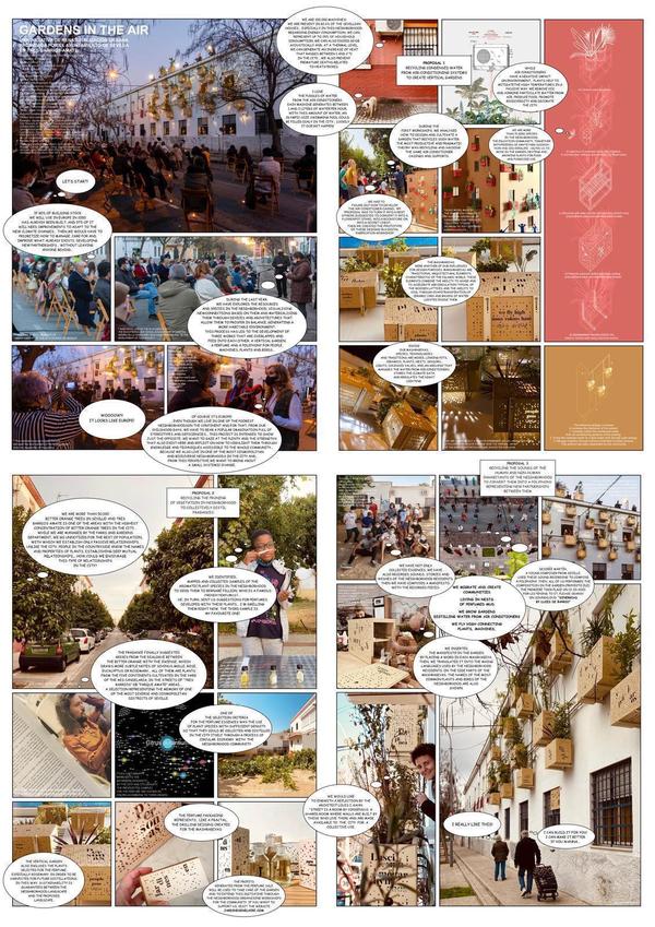 Jardines en el Aire, desarrollado en el barrio sevillano de Amate - Tres Barrios en colaboración con AES Candelaria y promovida por el Ayuntamiento de Sevilla (España) dentro del programa Luces de Barrio, ha sido galardonado con una mención honorífica en la tercera edición del