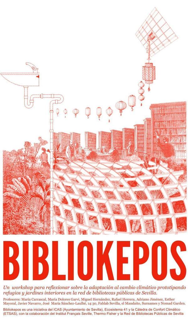 Bibliokepos es un workshop para reflexionar sobre la adaptación al cambio climático prototipando refugios y jardines interiores en la red de bibliotecas públicas de sevilla.