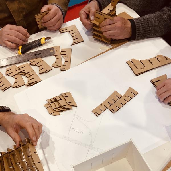 Una tarde ya finalizada la exposición de Luces de barrio en la casa Murillo y comenzado el 2018, Javier Real (nuestro carpintero), Tamara y yo volvimos a montar el hotel de insectos con forma de icosaedro en el huerto del colegio Andalucía en el Polígono Sur.