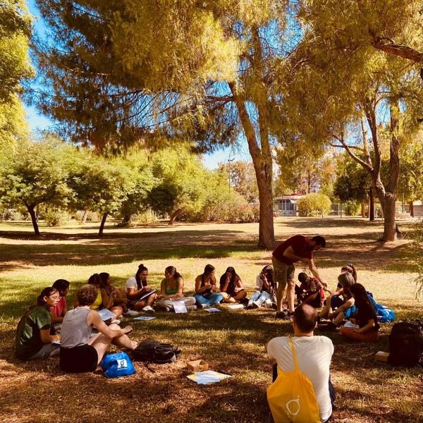El pasado día 20 de marzo poco antes de la llegada del equinoccio de primavera, tuvimos una pequeña clase al aire libre en el aula emparrada con nuestros alumnos del Huerta Sta Marina. Las condiciones climáticas no son aún todo lo extremas que llegarán a ser durante los meses estivales por lo que