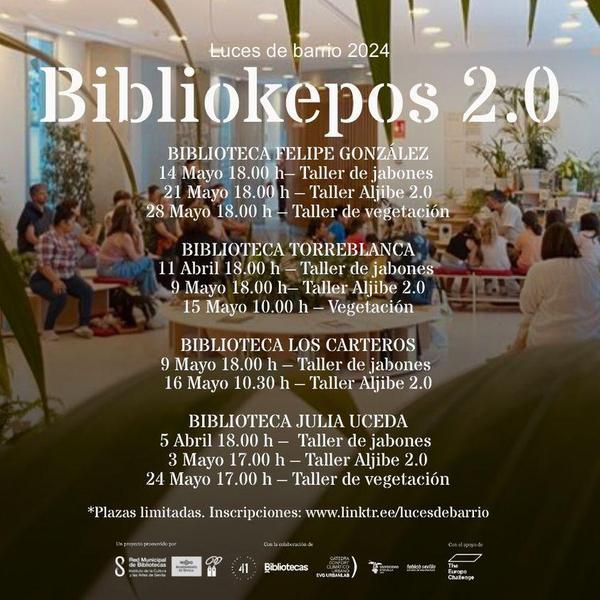 Los talleres gratuitos de Bibliokepos 2.o abren una nueva convocatoria en cuatro de los espacios de la Red Municipal de Bibliotecas - Torreblanca, Julia Uceda, Felipe González y Los Carteros -.